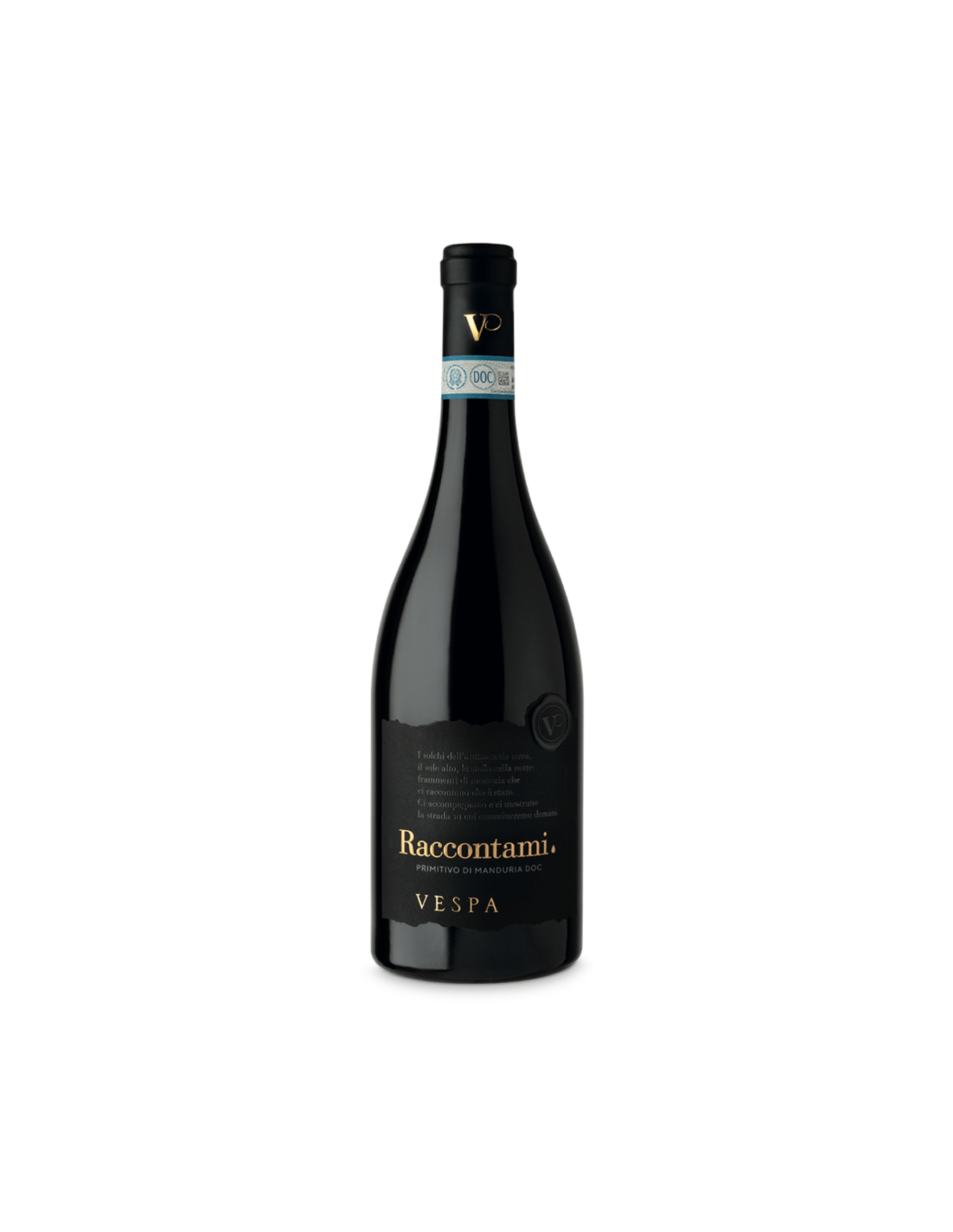 "Raccontami" is the Vespa family's Primitivo di Manduria DOC—a wine that speaks of a territory, a tradition, and a vision: that of a robust and sincere red, capable of winning over the palate at first sip.